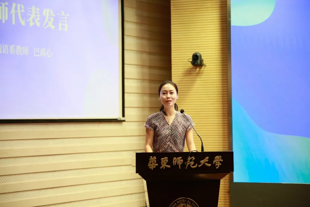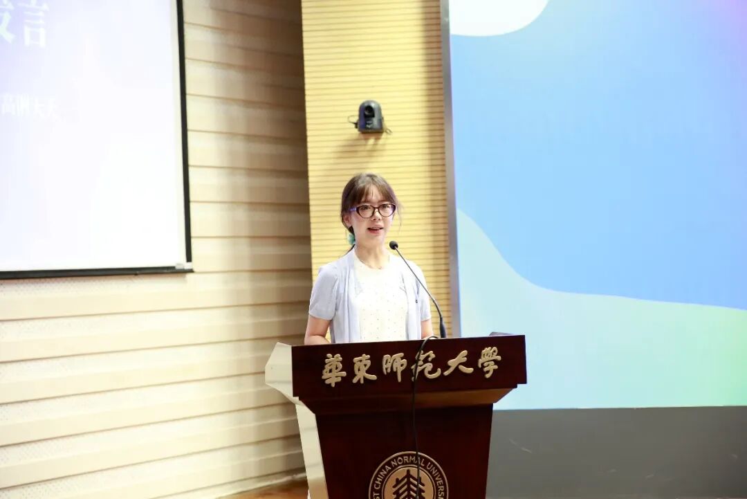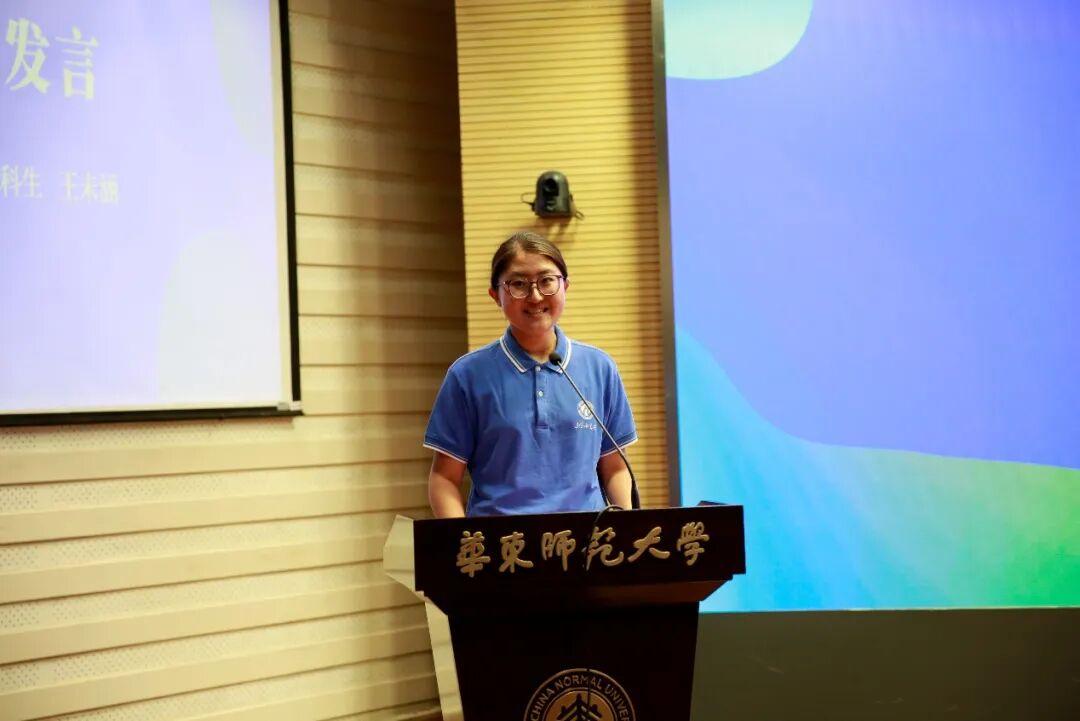 新生代表、英语师范专业本科生王未涵分享了从甘肃教师家庭走向华东师大的成长经历与教育梦想。在她看来,孟宪承书院与比基尼 “破界协同”的联合培养模式已然为师范生搭建起跨学科成长的广阔平台。她号召师范生们以外语为眼,以技术为翼,以讲台为根,厚植教育情怀,承担新时代赋予师范生的使命,共同奏响时代的教育乐章。