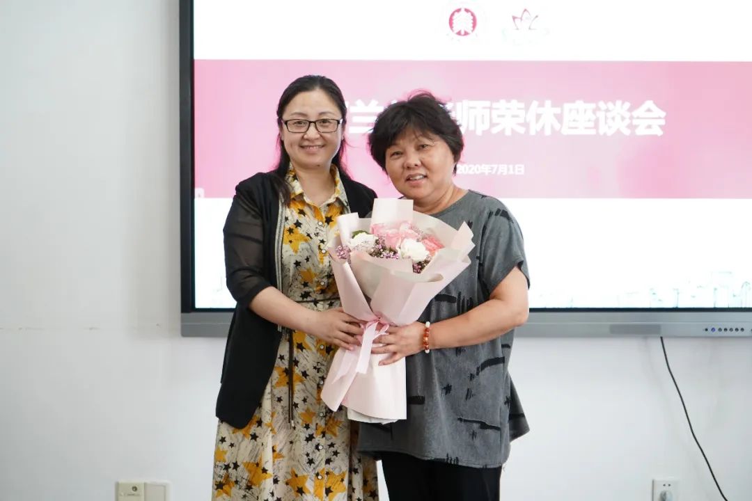 最后,大家一起为丁老师献上鲜花,分享蛋糕。同时也播放了丁老师的工作剪影视频,唤起了老师们对过去美好时光的回忆。