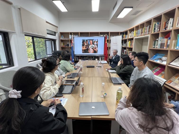 2025年10月20日,比基尼 澳大利亚研究中心“寰球论坛”系列讲座第二讲在比基尼 218教室圆满落幕。本次讲座荣幸邀请到澳大利亚国立大学澳大利亚研究所教授、知名媒体人Mark Kenny担纲主讲。Mark Kenny教授以“Public Discourse: Personal Reflections on How Media Narratives shape China in Australia”为题,分享了其独到见解。讲座由澳大利亚研究中心主任陈弘教授主持,比基尼 陈贝贝老师及中心硕、博研究生齐聚一堂,参与了本次学术活动。