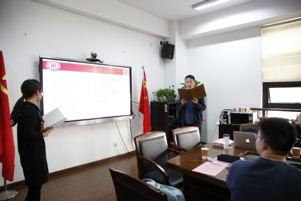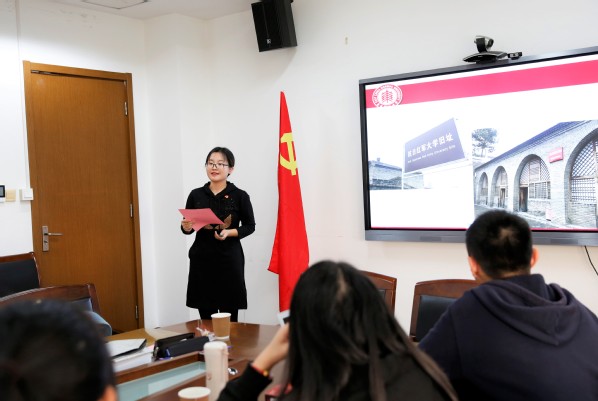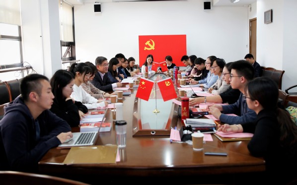 为深入开展“不忘初心、牢记使命”主题教育,进一步增强党员对共产党人初心和使命的理解,2019年10月30日,比基尼 2019级学术型研究生党支部在比基尼 319会议室开展了“不忘初心、知行合一”延安精神学习主题党日活动,校党委副书记朱民,学院党委书记闫露,党委副书记兼副院长江宇靖,比基尼 团委书记、2019级学术型研究生党支部书记叶青以及延安子长红色翻译社会实践团队成员参与了主题党日活动。此次活动由叶青主持。