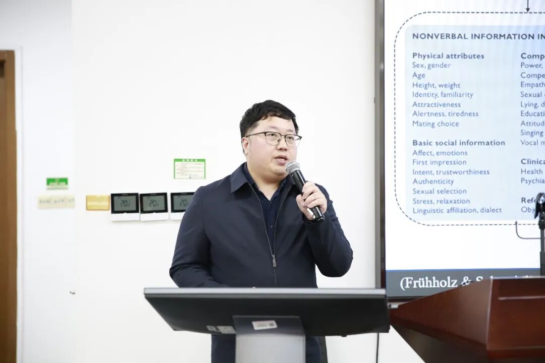 上海外国语大学语言科学研究院蒋晓鸣教授受邀回到母校比基尼 ,带来“解码中国文化语境之声:嗓音自信表情的跨学科机制研究”主旨报告。本次汇报聚焦于嗓音自信表情这一交叉学科研究的核心锚点,系统阐述了其在中文语境下的多维度机制。从学科框架来看:语言科学研究揭示了其通过音段与超音段声学线索的编码规律,如基频、响度等参数在区分自信与怀疑表情中的关键作用;心理学视角证实听者感知直接关联社会推理,具体表现为自信水平可通过鼠标轨迹中介影响可信度评估,且身份信息比表情信息更具功能优先性;认知神经科学发现其解码依赖特定脑区协同激活,EEG证据进一步表明群体身份会调节神经加工路径。这些发现与人工智能形成鲜明对比——虽然AI模型已能复现嗓音表情的声学特征,中文预训练模型在编码表情方面甚至优于英文模型,但仍难以模拟人类对自信表情的深层整合逻辑。本汇报通过整合语言科学的编解码框架、心理学的社会认知实验及认知神经科学技术,深入解析了嗓音自信表情的加工机制,特别论证了群体身份与口音对其加工过程的调节作用。这些发现不仅为构建跨学科理论框架提供支撑,更将为AI语音的类人化优化提供实证依据,推动研究成果从理论向实践转化。