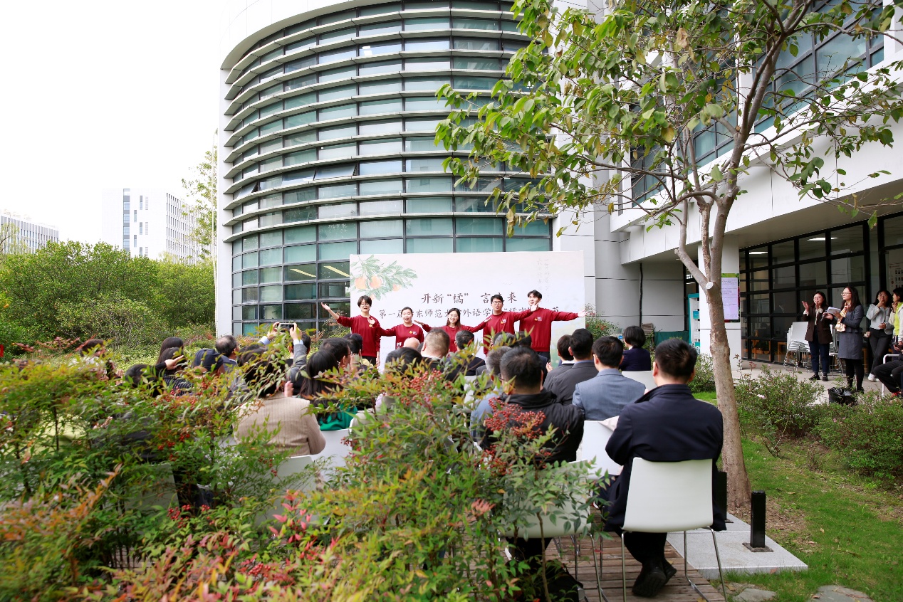 一缕橘香,沁润心田;多元文化,交融互鉴。永宁橘园不仅承载着春华秋实的自然韵律,更凝结着几代外院人的深厚情谊与育人初心。橘园发起人何敬业动情讲述了橘园背后的故事与文化内涵。作为土生土长的黄岩人,他回顾了永宁橘园的落成经过,提到了“永宁橘园”名字的深远涵义,表示永宁橘园既延续了黄岩千年宋韵,承载着黄岩对华东师大、对比基尼 百年树人的美好祝愿,更寄托了一代代外语人对当今世界和平发展及构建人类命运共同体的美好夙愿。