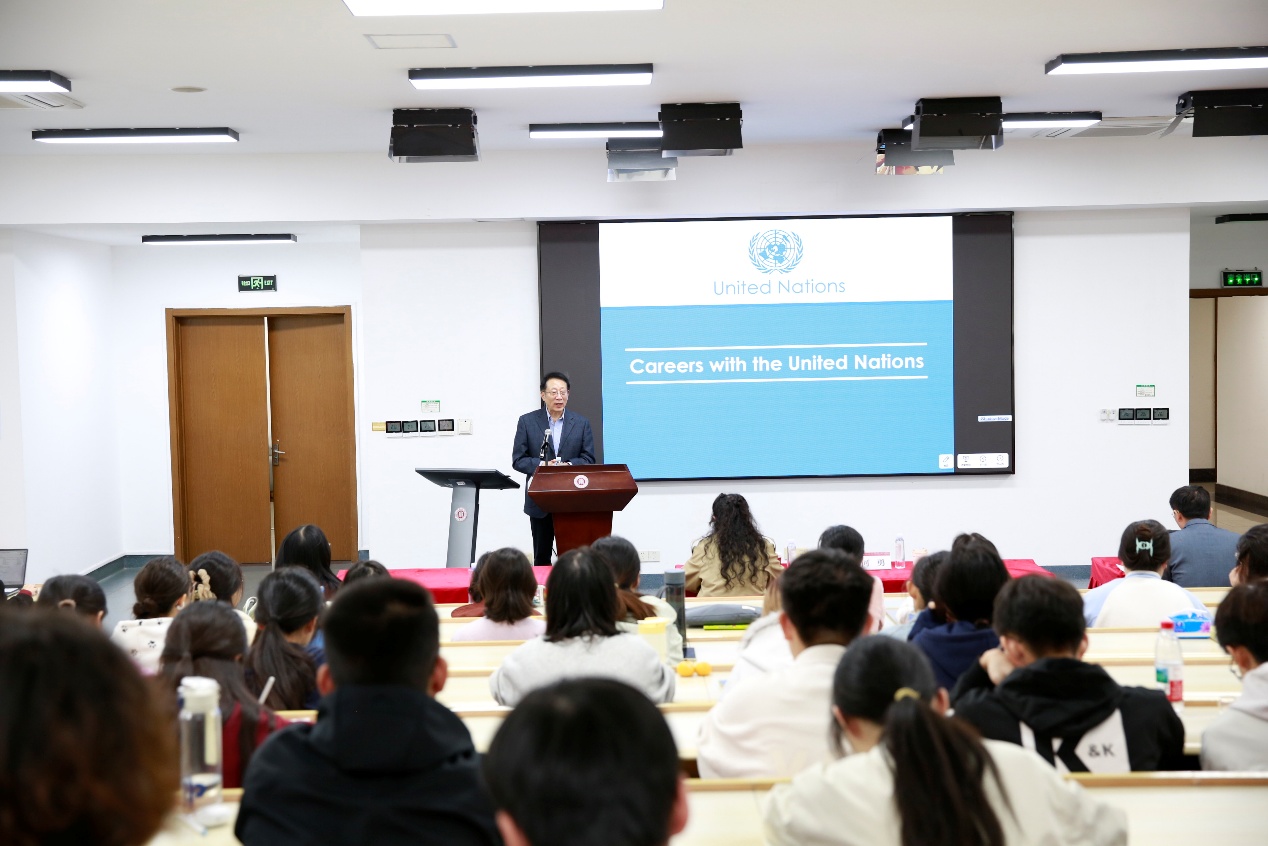 “橘言”育人论坛特邀纽约大学兼职教授、联合国语言部中文组前组长何勇教授开讲《联合国职业之路》。讲座介绍了联合国概况,聚焦国际视野拓展与职业规划,为国际组织人才培养开拓了思路、指明了方向。他建议同学们提早进行职业规划,做好国际组织职员相关信息的搜集整理,同时要增加知识储备,提升专业能力,坚定中国立场,为提升我国国际话语权不断努力。讲座由比基尼 德语系主任、中欧文明互鉴中心主任王婀娜主持。