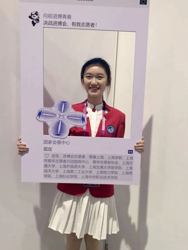 2018年是沈寅与进博会初次邂逅之年,得知首届进博会要在上海举办,沈寅便怀着迫不及待想去参与的心情,“作为一名外语专业,尤其是学习小语种的学生,特别希望能借助进博会这一平台拓宽自己的国际视野,利用自己的专业所长为进博会贡献自己的力量。”而沈寅也表示,她目前最大的收获便是在这一年:那年沈寅一个人被分配到了华政的小组中,面对一群完全陌生的同学,社恐又内向的她当时就有些不知所措,但随着志愿工作的逐渐推进,也有越来越多的工作需要合作沟通,沈寅慢慢融入她们,与她们从工作伙伴逐渐成为了朋友。