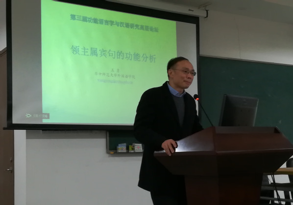 127日下午,上海交通大学王振华教授做了题为《现代汉语独词条件复句的功能》的主题报告,从系统功能语言学和修辞学的视角出发,研究了主从分句均为独词句的条件复合句。北京外国语大学何伟教授在《现代汉语助词“了”的功能视角研究》主题报告中,从系统功能语言学视角出发,对“了”字的用法进行了探究,系统地揭示了其语义和句法功能。华中师范大学王勇教授的《领主属宾句的功能分析》主题报告先总结了历来对领主属宾句的研究话题,后对其进行了作格分析,并阐述了其与存在句之间的联系。上海交通大学杨炳钧教授借助汉语语料库BCC中的实际语言事实,利用SPSS软件预测分析中的“自然对数”,得出了“高大上”这一词汇的发展趋势,并分析了词汇演变的机制和原因,做了题为《汉语词汇演变的语法隐喻视角:从“高大上”说起》的主题报告。专家们的报告引发了众多思考,专家和学者们纷纷抛出问题与大家进行了交流。
