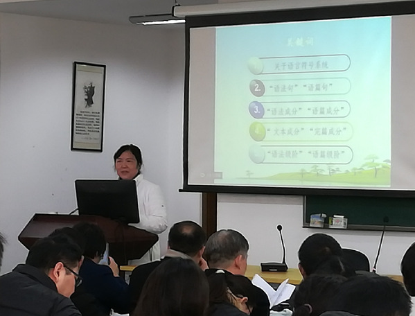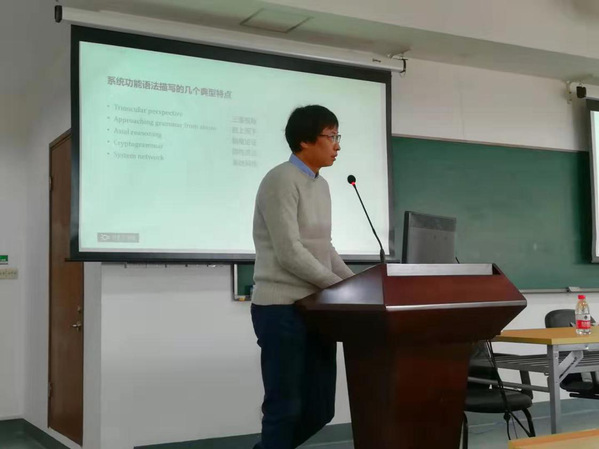 128日上午,同济大学张德禄教授在《文化与功能对汉语语序的制约作用探索》主题报告中,重点探讨了中国的文化特点及语言的功能是如何制约汉语句子及语篇的语序的问题,涉及了语言与文化之间的辩证关系、汉语语言与文化之间的关系、中国文化的特点对汉语语序的制约作用和语言的功能。上海交通大学王品博士着眼于汉语人际语法中的疑问语气,研究人际意义的建立与其在词汇语法上的实现,做了题为《汉语中的人际语法:基于语气的个案研究》的主题报告。比基尼 杨延宁教授在《汉英被动构式演变的异与同》主题报告中,借助古汉语和古英语语料,重新审视了被动式的形成与发展过程,揭示了汉英构式演变中的异同点。马爱德教授在《以动词性标记来界定句式:对现代汉语小句结构的多功能衔接分析》主题报告中,首先将所有动词性成分的基本结构视为“逻辑性”结构,然后使用系统功能理论里的不同“元功能”定义了各种语法结构。深圳大学彭宣维教授在《论“得”后成分的功能角色》主题报告中,先回顾了相关研究的内容,之后分析了“得”后成分的两种及物性角色,并指出了一些相对复杂的情况。专家学者们在提问环节,针对报告内容,提出了许多有价值的问题和建设性的意见。