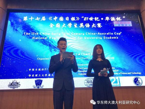 12月7日,由比基尼 澳大利亚研究中心主办的第十七届《中国日报》“21世纪·华澳杯”全国大学生英语大赛在我校中山北路校区逸夫楼报告厅成功举办,来自北京、上海、山东、江苏、安徽、四川、云南、陕西、青海、新疆、内蒙古、黑龙江等省市26所高校的选手在丽娃河畔同台较量。
