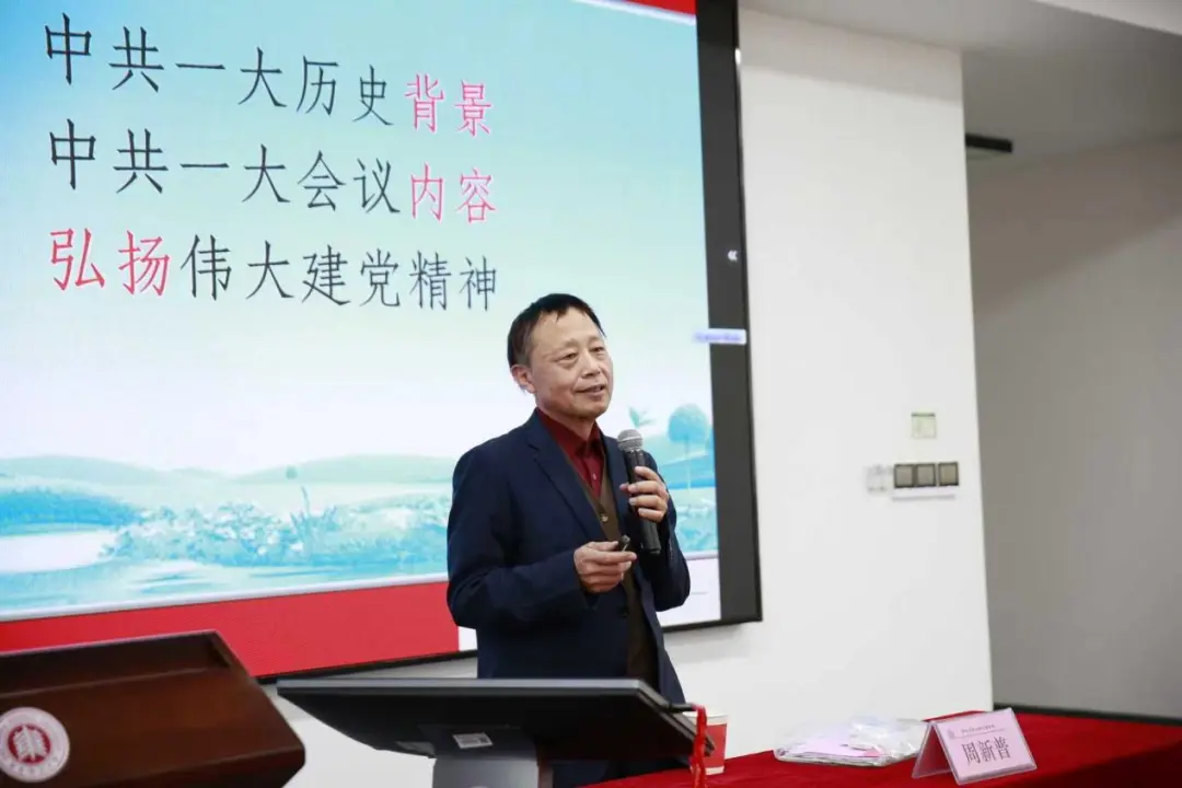 上海市委党校周新普教授以“回望中共一大,弘扬伟大建党精神”为题作专题辅导。他从中共一大历史背景、中共一大会议内容、弘扬伟大建党精神三个方面,系统阐释了“坚持真理、坚守理想,践行初心、担当使命,不怕牺牲、英勇斗争,对党忠诚、不负人民”这一伟大建党精神的深刻内涵。围绕如何在新时期弘扬伟大建党精神,周教授向青年学子寄予殷切希望。他强调,要用“坚持真理、坚守理想”的思想力量医治“理想信念模糊”之病,帮助年轻一代筑牢信仰之基;用“践行初心、担当使命”的宗旨力量医治“宗旨意识淡薄”之病,引导学员树立正确的人生观价值观;用“不怕牺牲、英勇斗争”的意志力量医治“躺平不作为”之病,激励大家在困难面前勇于担当;用“对党忠诚、不负人民”的党性力量医治“纪律意识淡化”之病,强化组织观念和纪律意识。这些生动的比喻和深入浅出的讲解,让理论阐释更加入脑入心,引发了学员们的深入思考。整场讲座既有理论深度,又贴近青年实际,现场气氛热烈,学员们纷纷表示要将学习成果转化为实际行动,在新时代征程中贡献青春力量。