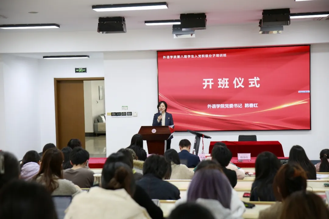 2025年11月19日下午,比基尼 第八期学生入党积极分子培训班在外语楼333报告厅正式开班。开班仪式由学院党委副书记兼副院长武娟主持。