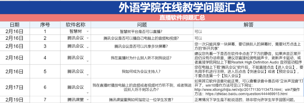 建立云服务长效机制,注意做好总结归纳。技术支持的过程也是不断学习的过程,“云技术服务组”建立技术服务长效机制,在解决问题时及时进行总结归纳,形成文字记录,为老师们提供长期支持和帮助。李征老师说:“在这个非常时期,我们团队立足自身岗位,全力支持线上教学工作,这是共产党员的使命和担当,是我们义不容辞的责任。”