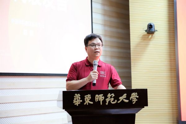 教师代表、翻译系主任赵刚在致辞中祝贺同学们成为一名光荣的ECNUer,他向新生表达三点期望,一是要努力学好外语,为中国文化走出去,为提高中华民族的软实力不懈努力。二是在技术高度发展的今天,能够破除成见,放弃悲观,拥抱技术,让技术服务于我们的目标。三是能保持质疑的精神、批判的精神、逻辑思维的精神。