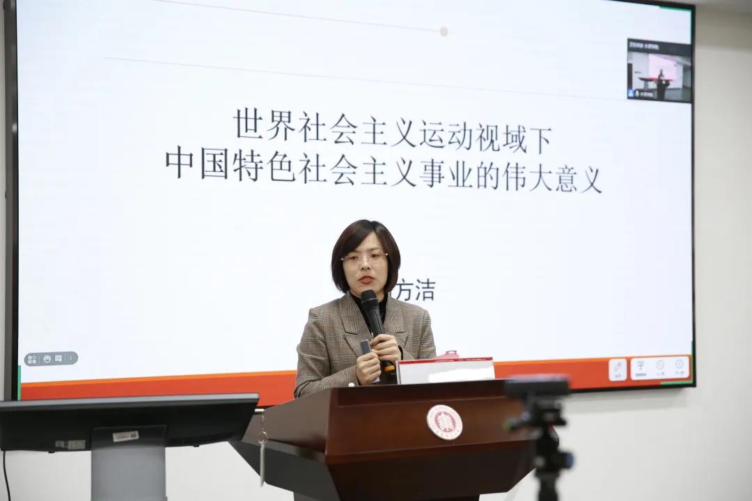 闫方洁教授从“世界社会主义运动史”视域出发,从“我们从事的是一项什么样的事业”“如何理解我们遭遇的困难”“如何理解我们选择的道路”三个问题入手,阐述了中国共产党领导中国人民所开创的中国特色社会主义事业的伟大意义。