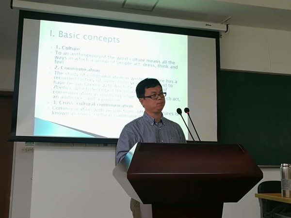 前翻译系主任、现美国中阿肯色大学孔子学院中方院长赵刚教授为翻译系师生精彩讲述“翻译与跨文化传播”。赵刚教授多年致力于笔译专业实践,有多部译著出版。其中,《中国插花艺术》、《中式纸艺花》等均由国外出版社出版发行,很好地推动了中国文化的海外传播与推广。此次,赵刚教授理论结合实践、国内结合国外,客观深入地分析了中译外传播过程中面临的问题和解决方案。