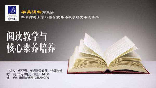 外语教学研究中心承办。本次讲座主讲人为上海市英语特级教师、特级校长,上海市普教系统1、2、3期“双名工程”英语学科名师培养基地主持人何亚男老师。何亚男老师始终致力于英语教学研究和学校英语教学特色的创建,近年来聚焦英语课堂,潜心进行中青年教师的培养工作。此次何亚男老师为我们带来了题为“阅读教学与核心素养培养”的讲座,通过理论联系实践,唤起了当代大学生对于阅读教学的进一步思考。