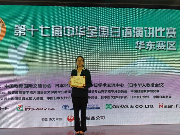 喜报|日语系杨悦琦同学获“第十七届中华全国日语演讲比赛”华东赛区二等奖