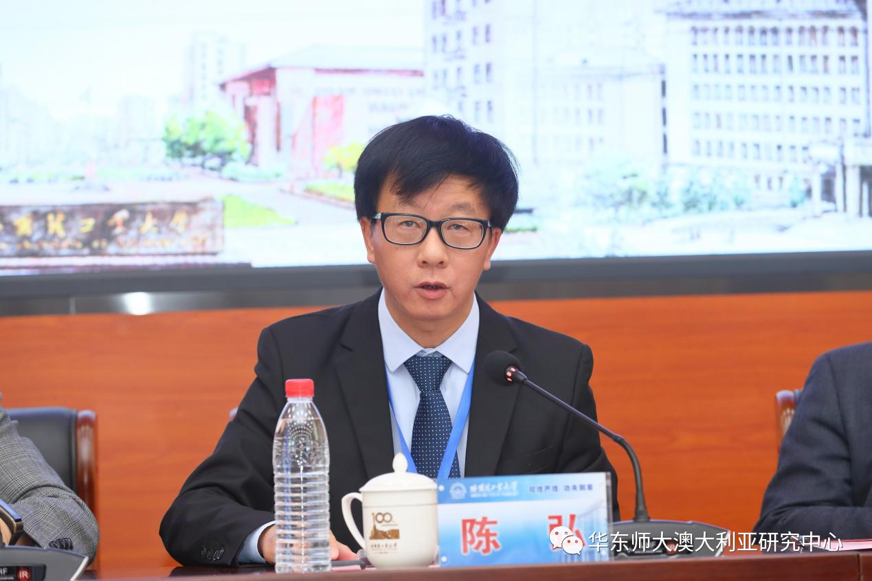 澳大利亚研究中心主任陈弘教授致辞。他回顾了澳大利亚研究会的历史和发展现状,指出中国和澳大利亚是全面战略合作伙伴,国内37家澳研中心长期开展的教学和科研工作极大地促进了中澳两国政府和人民之间的相互了解,增进了两国的互信和友谊。在百年变局的时代洪流中,澳大利亚研究工作者应肩负时代使命,致力于在两国间消除误解和建立互信。