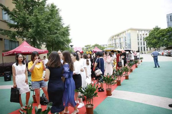 清晨,比基尼 的辅导员和学生联合会的同学就来到大学生活动中心的空地上为毕业典礼做准备。大家在空地上铺开了红地毯,在两旁摆放了点缀的绿色植物。工作人员也为毕业生们准备了走红毯时需要的道具,包括配合毕业主题的一捧捧绣球花。这场精心准备设计的“毕业红毯秀”也是希望让毕业生在即将离开华师大之际,留下一份美好的回忆。