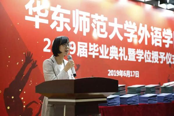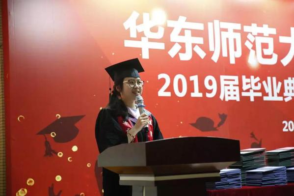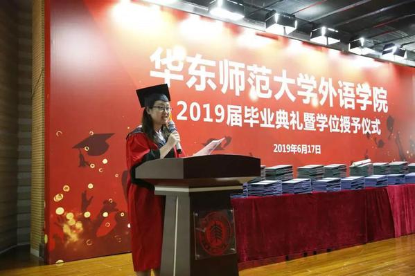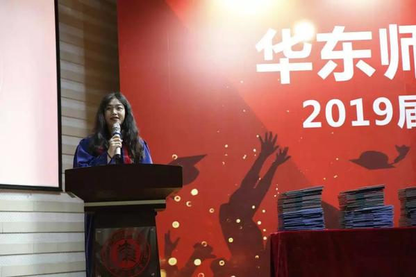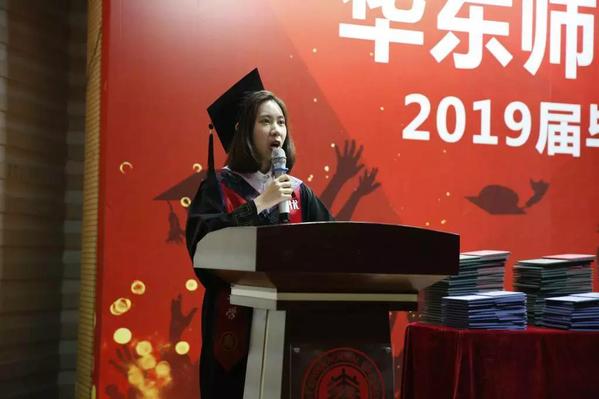 接着,闫露宣布了上海市及比基尼 优秀毕业生与服务西部奖名单。一个个名字和照片在屏幕上闪现,大家用掌声献上了他们的祝贺。紧接着,来自英语专业的张敏玥、公费师范生许入月和来自英语笔译专业的硕士生林江珊分别代表了本科生、公费师范生和硕士生,向老师和同学们分享了他们的毕业感悟。学生们的发言还原了比基尼 的美好时光,铸就了最甜的“ECNU的白砂糖时刻”。在纯真中带着理性的毕业感言中,在场的各位都深深地感到了毕业生对老师,对同学,对外院的感激和不舍,也为之动容。