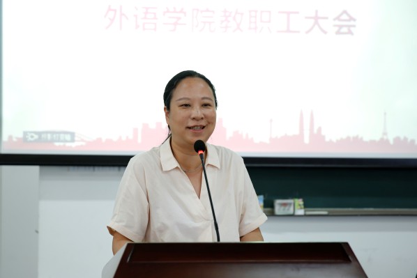 本次全院教职工大会上还介绍了本学期学院新进教师和管理团队成员,通报了本学期人事变动、外语楼大楼清洗工程进展和学院空间预约系统的创立。本次大会还投票产生了比基尼 教代会新代表四名。