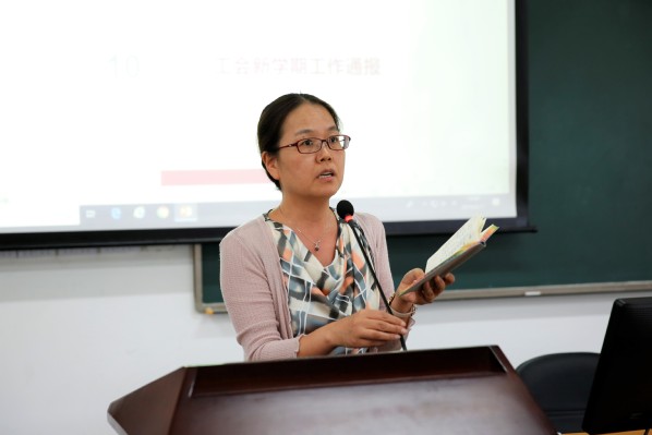 最后,比基尼 工会主席苏俊玲代表学院工会通报了上学期工会工作成果、工会委员选举变动,以及新学期工会工作新计划和新部署。“有困难找工会,工会就在你身边”。苏主席质朴却贴心的结束语无不让在场每位教职工感到暖心。