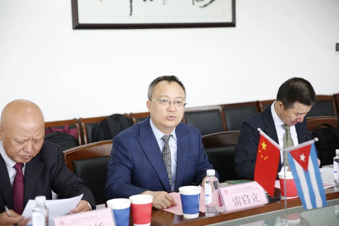 雷启立对Marian Hernández Colina 副校长一行的到访表示欢迎。他指出,中古两国人民传统友谊深厚,在深化高质量共建“一带一路”合作方面,华东师大和哈瓦那大学作为两国办学历史长且具有重要影响力的高校,正可以发挥优势引领作用,以此次来访为契机,进一步加强合作、共享优质资源,在西班牙语及拉美文化、马克思主义思想和社会主义实践研究、医疗健康体系建设等学科领域丰富合作内涵。雷启立表示,在两校的精诚推动下,哈瓦那大学代表团的访问定能结出丰硕的成果,两校的合作也将成为中古两国高校合作、发展中国家真诚互助的一个典型范例。