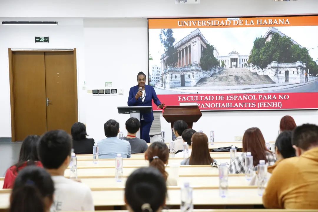 Lidia Cuba博士为我校西班牙语专业师生做有关古巴哈瓦那大学及拉美文化的讲座